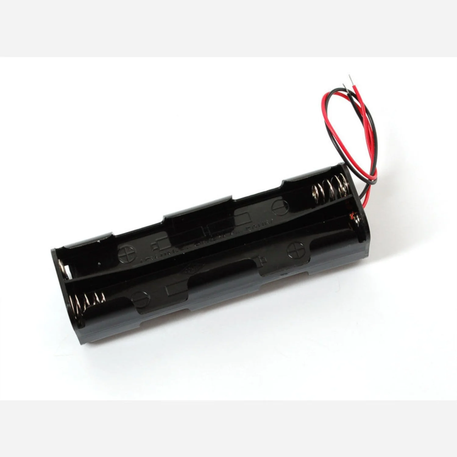 The holder securely retains the batteries even when bumped or moved, making it suitable for mobile projects. Wire leads are provided for connection — a DC power plug adapter can be added for easy plugging into barrel-jack devices.